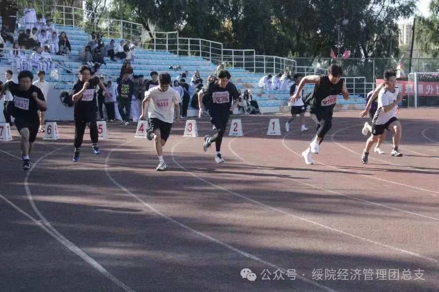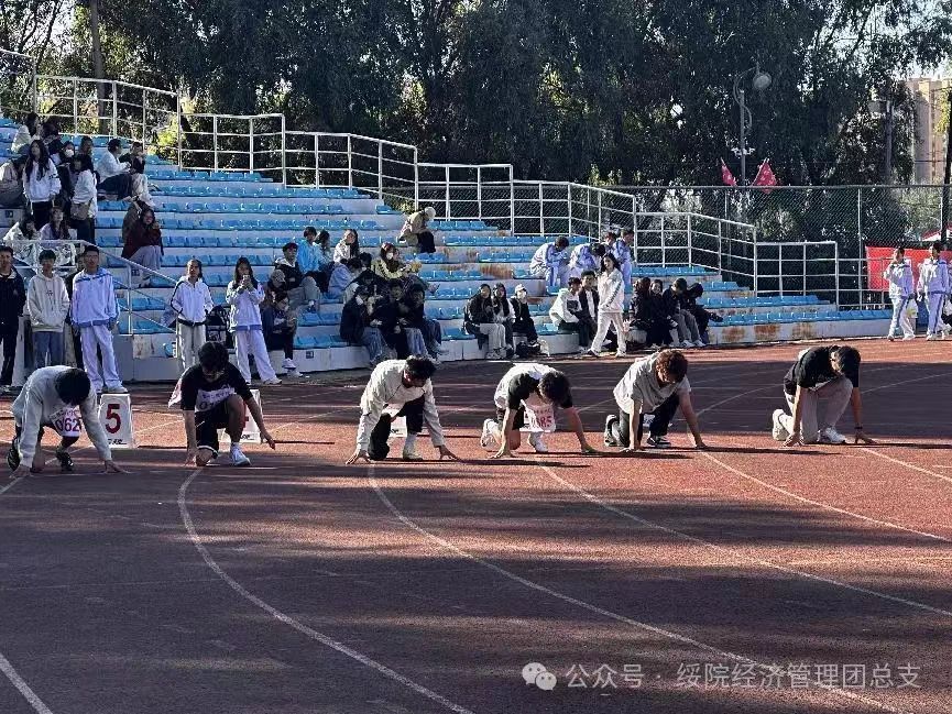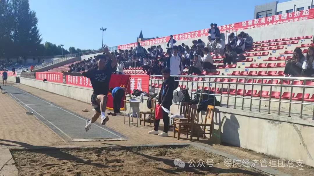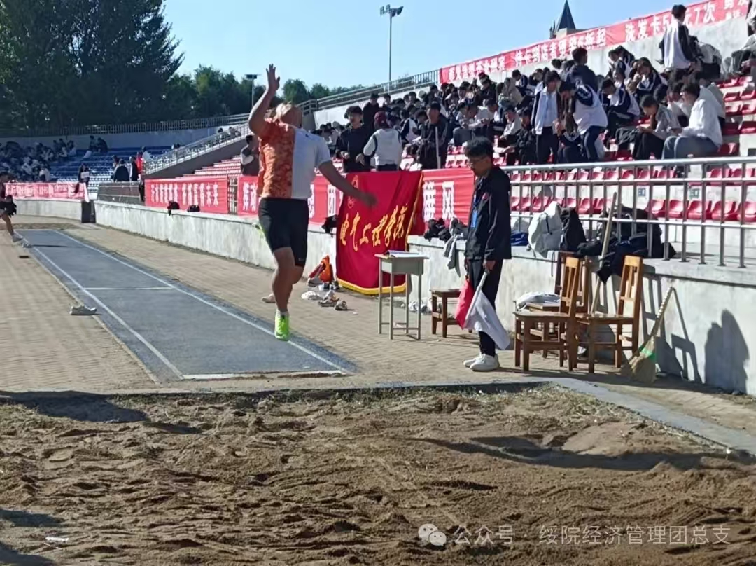随着发令枪清脆的鸣响,经管运动员们在赛道上疾驰,在跳高杆前飞跃……每一块肌肉的紧绷,每一滴汗水的滑落,都是对“更高、更快、更强”体育精神的最佳诠释。他们的身影在阳光下拉长,仿佛在向世界宣告:这就是青春的模样,无畏且充满力量。观众席上,同学们的加油声响彻云霄,给予运动员们无限的动力;裁判员们,作为赛场上的公正守护者,以专业的态度和严谨的精神,确保每一场比赛都在公平公正的环境中进行。