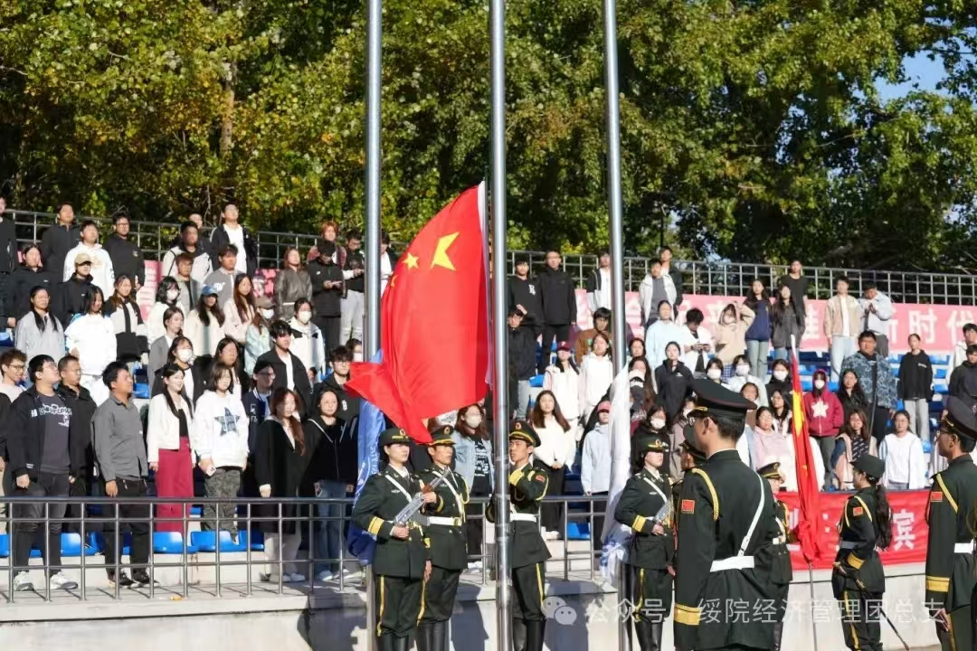 晨光熹微,随着雄壮激昂的国歌旋律缓缓响起,五星红旗徐徐上升。升旗手们,身姿挺拔,眼神坚定,步伐沉稳而自信,彰显着我校学子精益求精、整装待发的精神风貌。飘扬的五星红旗在蔚蓝天空的映衬下更加鲜艳夺目,承载着经管学子对知识的渴求,对未来的无限憧憬,对责任的担当,展现着经管学子锐意进取、蓬勃向上的精神风貌。